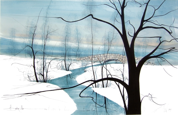 When Pat adds a watercolor image or motif to a limited edition print, the result is called a �Remarque print�. Because Pat is painting in watercolor directly onto the surface of the print, each Remarque becomes a unique image, bearing an original in Pat�s own hand. As a one-of-a-kind piece the Remarque print has a value between that of a print and an original watercolor, depending on the extent and complexity of the added watercolor Remarque.