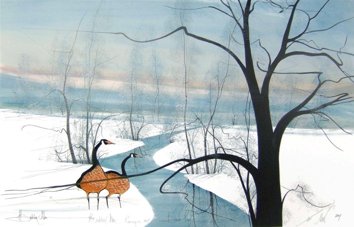 When Pat adds a watercolor image or motif to a limited edition print, the result is called a �Remarque print�. Because Pat is painting in watercolor directly onto the surface of the print, each Remarque becomes a unique image, bearing an original in Pat�s own hand. As a one-of-a-kind piece the Remarque print has a value between that of a print and an original watercolor, depending on the extent and complexity of the added watercolor Remarque.