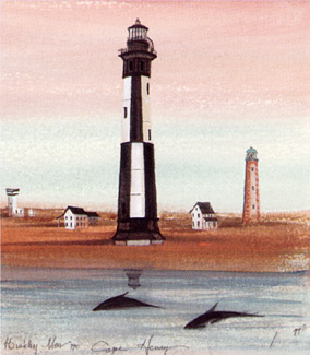 Old Cape Henry Lighthouse and New Cape Henry Lighthouse are both located in Virginia Beach at the southern entrance to the Chesapeake Bay. In 1791, Alexander Hamilton, first Secretary of the Treasury, contracted renowned lighthouse builder John McComb, Jr., to construct the first lighthouse commissioned by Congress. He used local stone to build a 90-foot classic octagonal tower. After repairs in 1863, the light continued in operation until large cracks appeared in the walls, then Congress authorized a new lighthouse to be built. The new 163-foot tower stands 350 feet away from Old Cape Henry. It is a pyramidal tower of cast-iron plates painted alternately black and white. Both stand within Fort Story, and a local preservation society has refurbished the old tower.