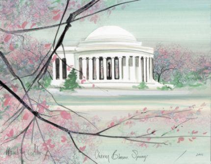 Cherry Blossom Spring features the Jefferson Memorial and some of the blossoms from the 3,000 cherry trees that were a gift from the city of Tokyo, Japan to the people of Washington, DC, in 1912.