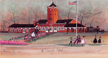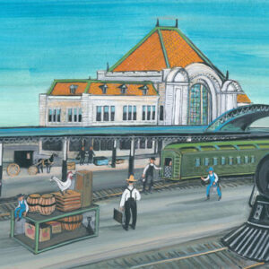 The Clinchfield Railroad shows the old train depot for Kingsport, Tennessee. The station is now a bank but trains still run behind it.
