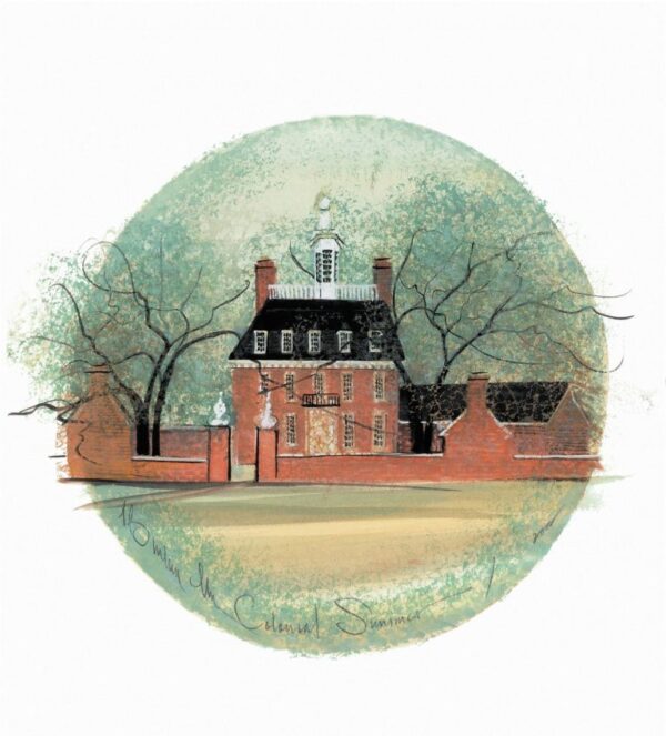The Governor’s Palace in Williamsburg, VA, which was built in the early 1700’s, is depicted in Colonial Summer.