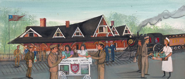 Dennison Railroad Depot, Dennison, Ohio, portrayed as it was during its World War II heyday. Dennison was nicknamed Dreamsville USA during WWII.