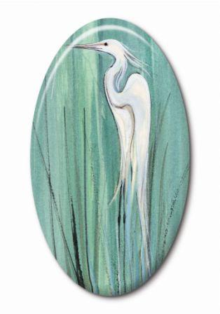 A unique concept in fine art jewelry. A gold colored setting designed by Pat Moss surrounds your choice of P. Buckley Moss images. The fine porcelain centerpieces are interchangeable.