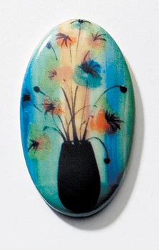 Buy a gold setting and any or all of the sixteen porcelain images. There is an image to suit every mood and every occasion. The porcelain inserts adhere to the setting with a powerful magnet.