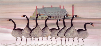 Along with Pat’s signature geese, this print features The Whalehead Club in Corolla, North Carolina. In 1925, wealthy visitors who came to the area to hunt waterfowl built the club. Seven years ago, the county purchased the club. Currently, a $5.6 million restoration effort is underway. Once finished, the restored 35-room clubhouse on 38 acres could draw 200,000 visitors a year.
