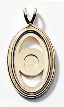 A unique concept in fine art jewelry. A gold colored setting designed by Pat Moss surrounds your choice of P. Buckley Moss images. The fine porcelain centerpieces are interchangeable.