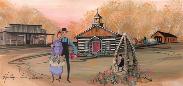 This print features some of the buildings at the Heritage Farm Museum and Village in Huntington, West Virginia.
