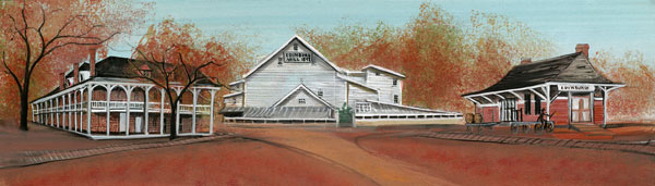 Home Sweet Home-Edinburg, VA depicts the Hotel Edinburg, the Edinburg Mill, and the Edinburg Train Station.