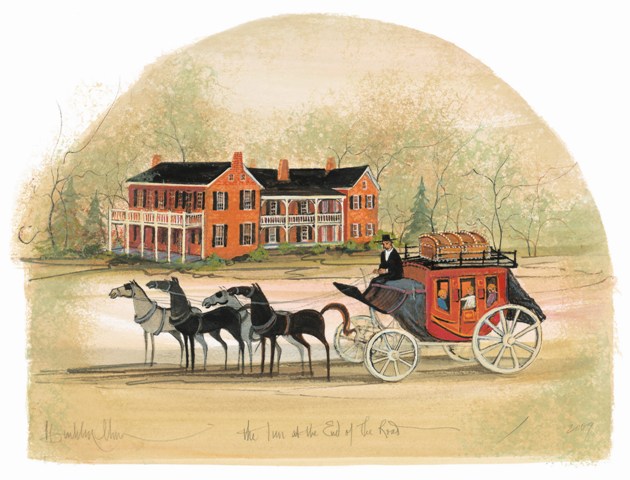 This print features the historic Pennsylvania House in Springfield, Ohio, which is now owned and operated as a museum by the Lagonda Chapter of the Daughters of the American Revolution. In its early days, the Pennsylvania House was an important stopover along the National Road for livestock drovers and pioneers during the country�s westward expansion in the nineteenth century.