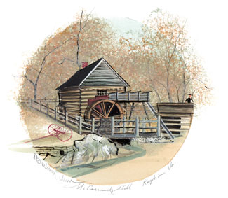 Cyrus Hall McCormick invented the first successful reaper and founded the harvesting machine industry. This, the world’s first successful mechanical reaper, opened a new era in agriculture, an age of mechanization that changed life on the farm. Visitors are welcome to tour the McCormick farm in Walnut Grove, including the historic blacksmith shop turned museum, grist mill and manor house, which are National Historic Landmarks. The mill was last utilized for grinding wheat in 1931. It is believed to date prior to 1800. Its typical overshot wheel, generating about 17 horsepower, is propelled by water from the pond across the road.