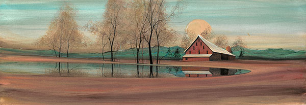 This giclee was inspired and then created by Pat to celebrate the opening of her son John�s restaurant, Moonshadows, in Luray, Virginia. Luray is located in the Shenandoah Valley and nestled up against the Blue Ridge Mountains. The area, as depicted in this painting, captures the essence of the spectacular views, peacefulness and outside adventure that Luray is known for. Visit Moonshadows Restaurant here.