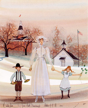 Mother of 4-H features Jessie Field Shambaugh who introduced lessons in agriculture and home making to her class at Goldenrod School in 1901. This concept became the basis for the 4-H Club of America. The school was built between 1872-4, four miles east of Essex, lowa. It was later moved to the Page County 4-H Fairgrounds in Clarinda.