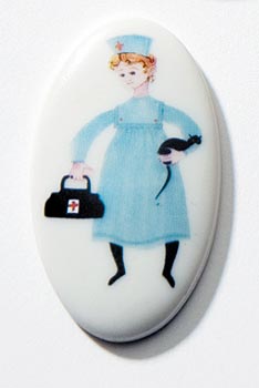 Buy a gold setting and any or all of the sixteen porcelain images. There is an image to suit every mood and every occasion. The porcelain inserts adhere to the setting with a powerful magnet.
