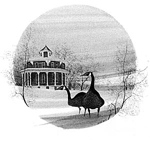 This is a black and white illustration of a color print.