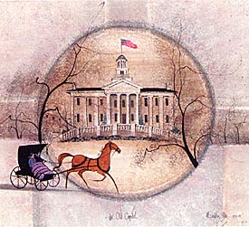 The Old Iowa Capital building was built by J. F. Rague in 1840 in Iowa City.