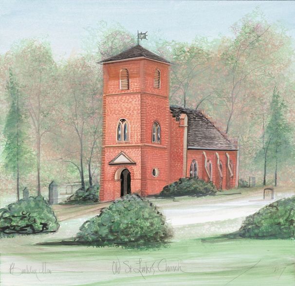 This print depicts Old St. Luke’s Church located in Smithfield, VA. It is the oldest existing church of English foundation in America and the nation’s only surviving Gothic building.