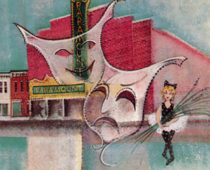 Opening Night portrays the Paramount Art Center, Ashland, Kentucky. Built in 1931, the Paramount was the first sound-and-motion picture theater in the Ohio Valley. Today, the center is home to the Ashland Youth Ballet and the Backstage Players, a theater group for young adults.