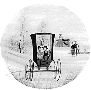 This is a black and white illustration of a color print.
