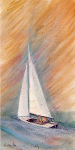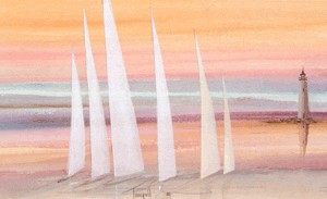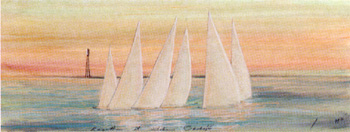 Regatta at Lake Okoboji portrays the sailboats which frequent the waters of Lake Okoboji, Okoboji, Iowa. Lake Okoboji is one of only three blue water lakes in the world.