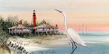 Sails at Sanibel is Pat’s second print featuring Sanibel Lighthouse, located on the eastern tip of Sanibel Island near Ft. Meyers, Florida. The lighthouse has been in operation since 1884. Traditionally, the lighthouse keeper and his family resided in one of the two wood frame houses which were built at the same time as the lighthouse.