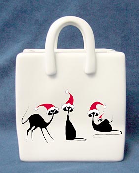 The back of the bag features two more Santa Cats with the P. Buckley Moss signature.