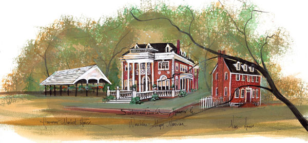 The print features the Hanover Market House, the Warehime-Myers Mansion, and the Neas House, which are all very meaningful to Hanover.