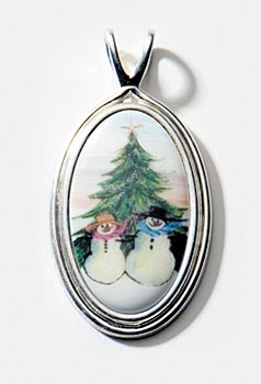 A unique concept in fine art jewelry. A gold or silver colored setting (sold separately) designed by Pat Moss surrounds your choice of P. Buckley Moss images. The fine porcelain centerpieces are interchangeable.
