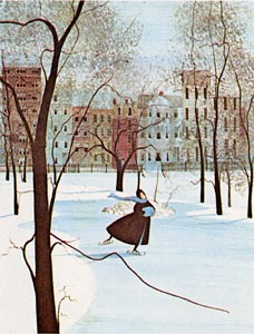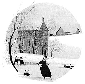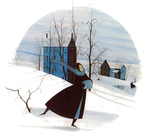 This is a black and white illustration of a color print.