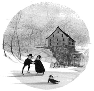 This is a black and white illustration of a color print.