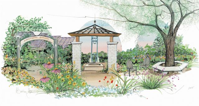 This print depicts Reiman Gardens at the Iowa State University in Ames, Iowa.