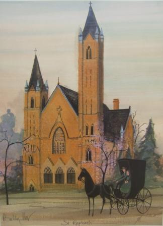 St. Raphaels Catholic Church was founded in 1849 in Springfield, OH. Construction was started in 1848 by the mostly Irish and German Catholic families of Springfield in its distinctive, modified Gothic style, and a large addition was dedicated in 1898. Today the church has over 1,000 members.