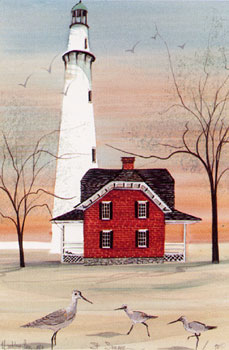 St. Simons, Georgia’s largest and perhaps most historically interesting “Golden Isles” is home to St. Simon’s Lighthouse. The original lighthouse, completed in 1811, was destroyed in 1862 to prevent its use by the Federal blockading squadron when the Confederate troops were withdrawn from the island. In 1872, a 106-foot, dazzling white replacement tower was erected a short distance to the north of the original site. Today, the lighthouse remains in active use, throwing a 500,000 candle power beam of light visible 18 miles at sea on a clear night.