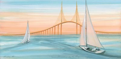 Sunshine on the Bay depicts the Sunshine Skyway Bridge in St. Petersburg, Florida.