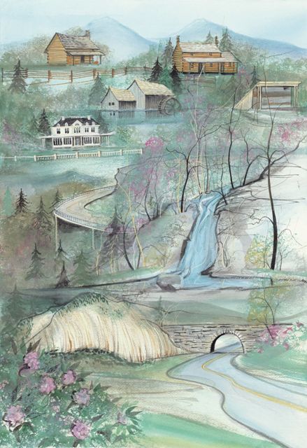 This print celebrates the Blue Ridge Parkway’s 75th Anniversary and features the Peaks of Otter, the Farmstead at Humpback Rocks, Explore Park, Mabry Mill, the Blue Ridge Music Center, the Cone Manor House, the Linn Cove Viaduct, Linville Falls, and Looking Glass Rock.