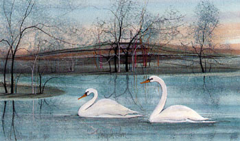 Tranquil Love Swan Lake Park, Carroll County, Iowa, consists of a 510-acre area including a 115 acre lake. Currently there are two trumpeter swans in residence, as well as three wildlife exhibits containing native and domestic animals. The park provides camping, environmental education, water activities and trails for hiking, biking and horseback riding. Winter activities, such as cross country skiing, sledding and ice fishing, may also be enjoyed by park visitors.