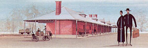 Waiting to Board features the Osceola Depot, Osceola, Iowa. As the most popular depot in Southern Iowa, this historic building serves over 14,000 passengers a year. The depot is owned by the Burlington Northern Sante Fe Railroad, but the City of Osceola has considered acquiring and restoring the aging structure.