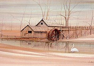 This print represents the second season in a series of seasonal Clifton Mill prints. Historic Clifton Mill, located in Clifton, OH was built in 1802 and is one of the largest water powered grist mills still in existence. The companion print is Winter Geese at the Clifton Mill.
